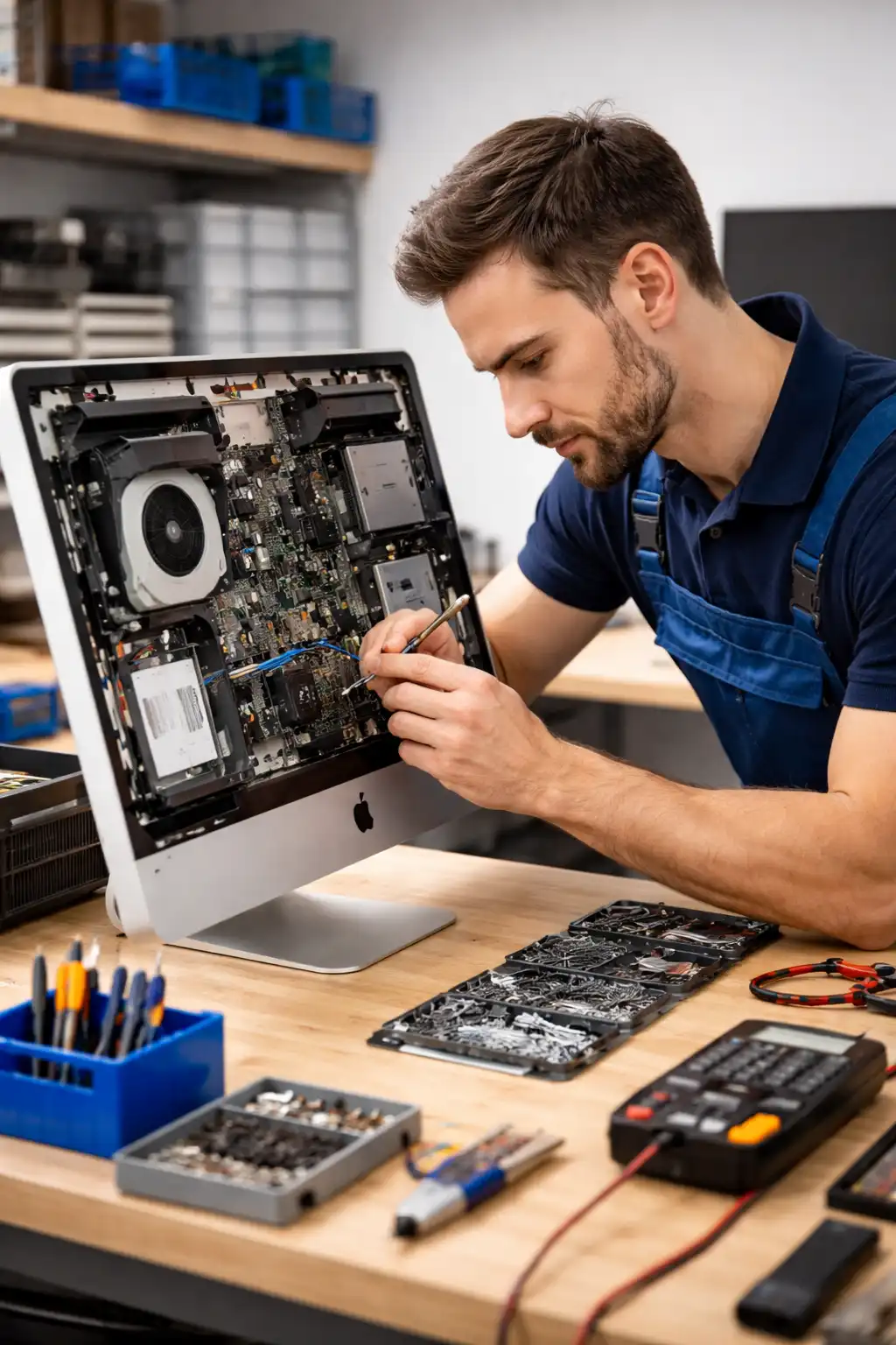Мы выполняем ремонт моноблоков любых производителей: Apple iMac, HP, Lenovo, ASUS, Acer, Dell и других. Устраняем как программные сбои, так и аппаратные неисправности.